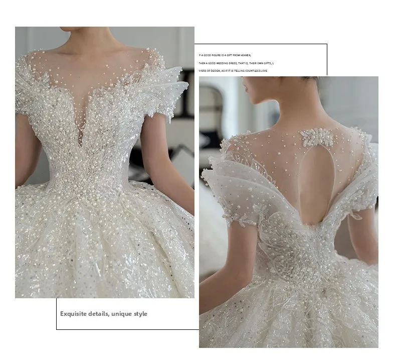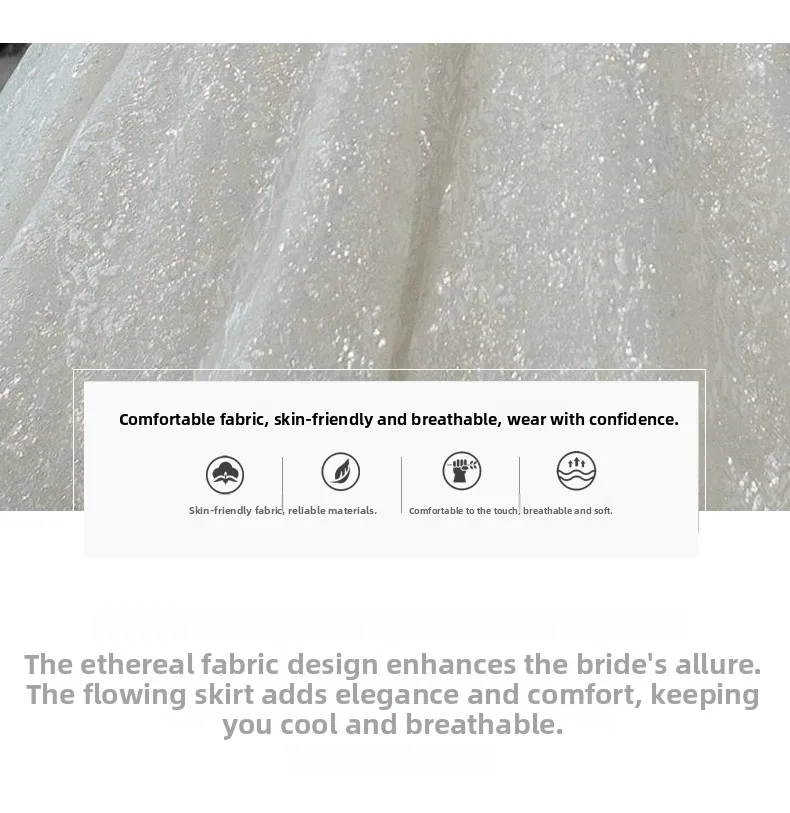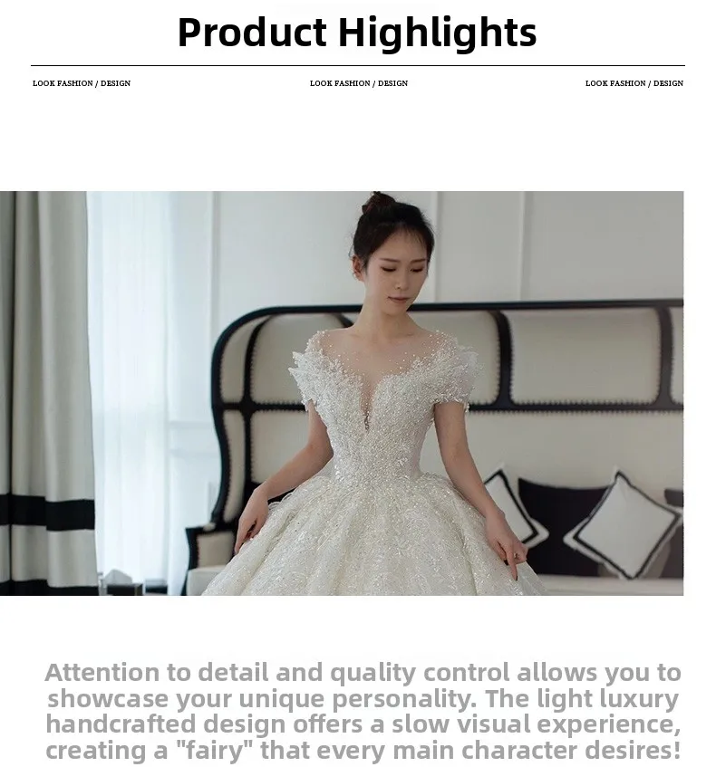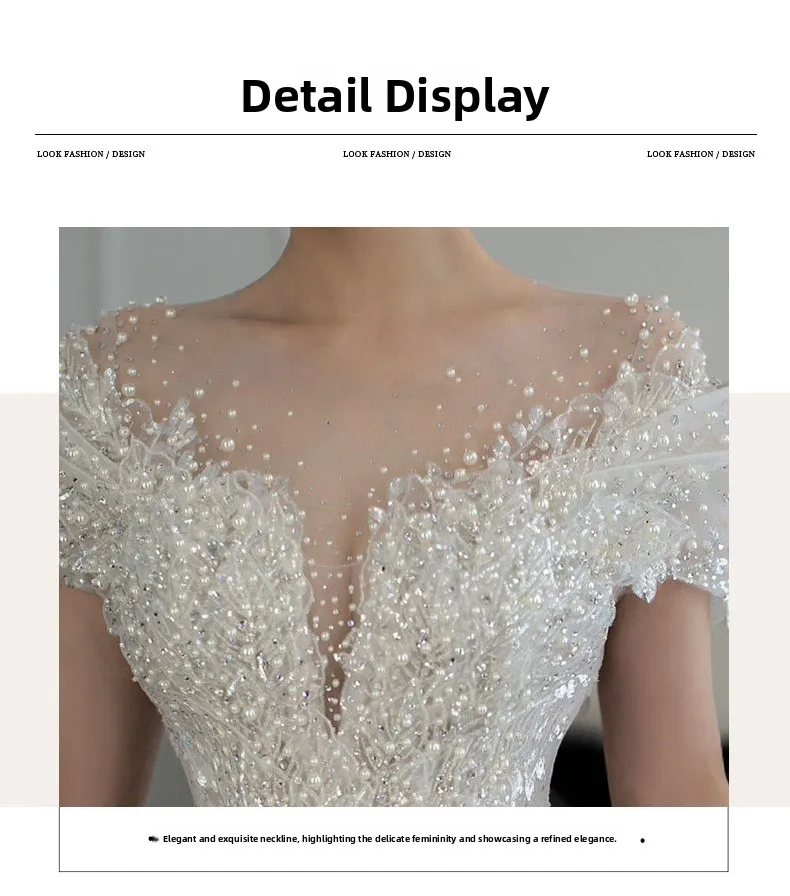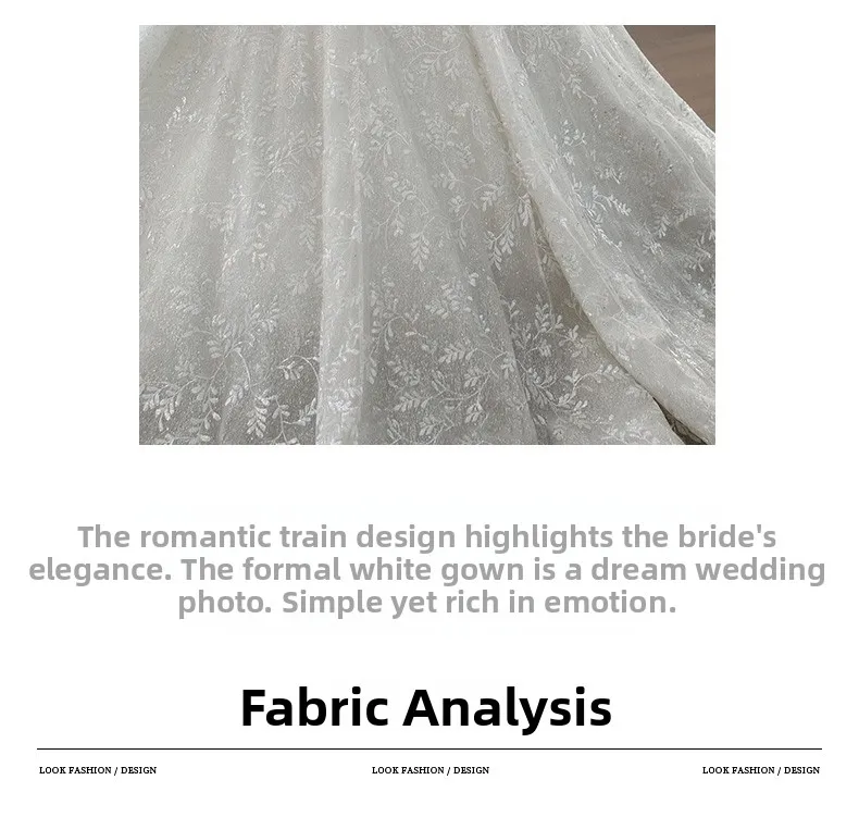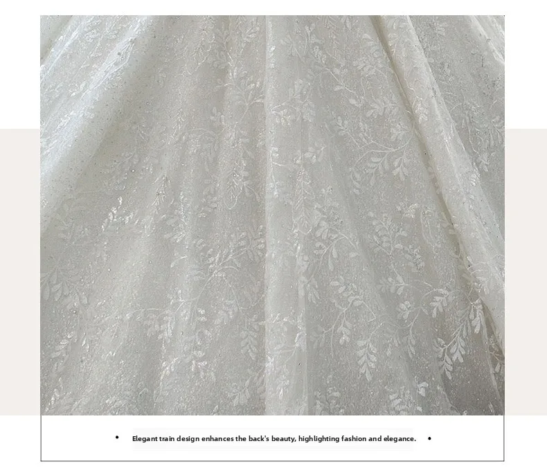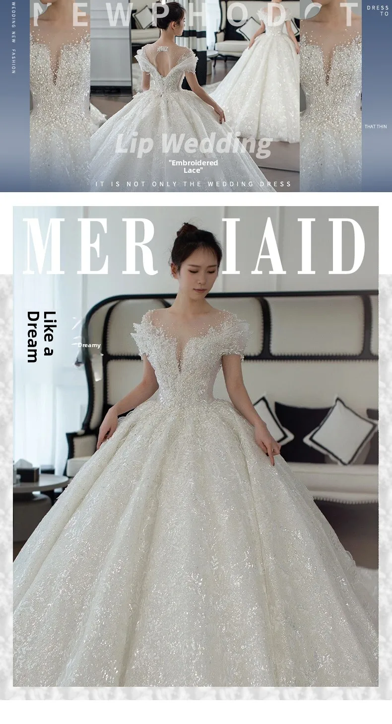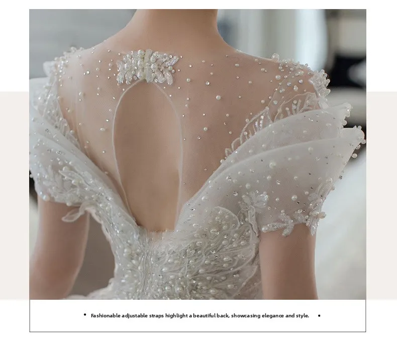 This wedding dress features a Korean style design, offering a modern and elegant look for the modern bride.